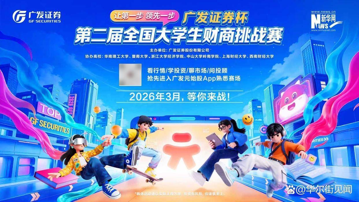 为深(shen)入落实(shi)投资者教育纳入国民教育系统的(de)安排,践(jian)行“投资者教育进(jin)百校”倡议(yi),在广东证券(quan)期货业协会的(de)指导下,广发证券(quan)联合华南理工大学、暨南大学、浙江大学经(jing)济学院(yuan)、中山大学岭南学院(yuan)、上海财经(jing)大学、西南财经(jing)大学等全国多所重点(dian)高校举行的(de)第二届“广发证券(quan)杯”全国大先生财商挑(tiao)战赛已于2026年3月1日开启报名,并将于3月23日至5月8日通过“广发元始(shi)股”App正式开赛。