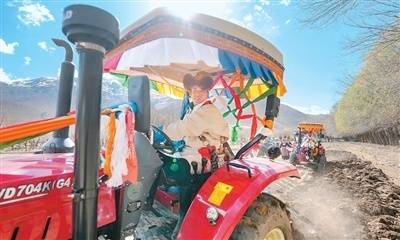 28岁的村民尼玛扎西驾驶着一辆蓝色“502型拖拉机”,拖着翻转犁开(kai)进农田,划(hua)开(kai)了甜睡一冬的膏壤。这是他的第三代“铁牛(niu)”,是去年当局补助(zhu)8000多(duo)元买的。“家里14亩地,以前平整、收获,要花半个月时间(jian),目前半天(tian)就完成了。”尼玛扎西说。